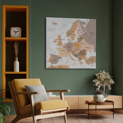 Európa térkép, vászonkép országok barna