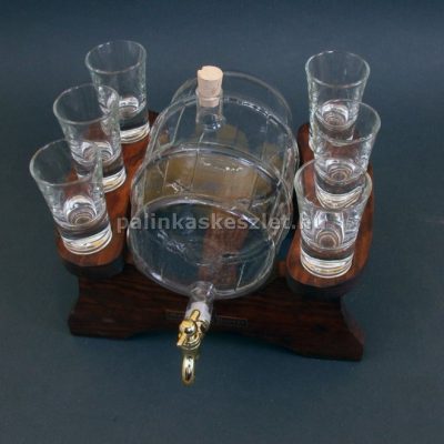 Fa Pálinkás készlet 1 Hordó - 6 Pohár barna