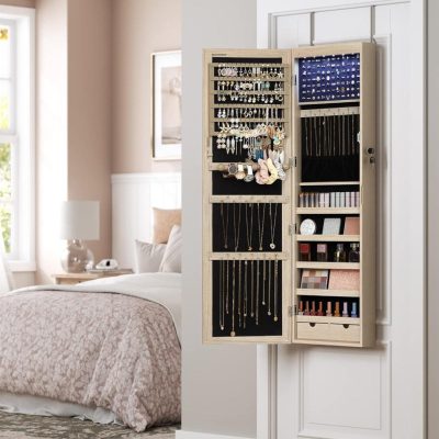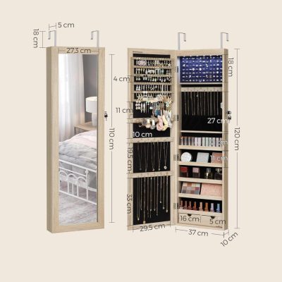 Nem bonyolult szépségápolási rutin: Ha minden ékszerét szépen tárolja ebben a gardróbban, nem vesztegeti az időt a fülbevalók keresésére vagy a kedvenc nyakláncok kibogozására.Segítségével gyorsan megtalálja ékszereit, és tükrében akár egy pillantást vethet a mai napra.Egyszerűsítsd az életed!