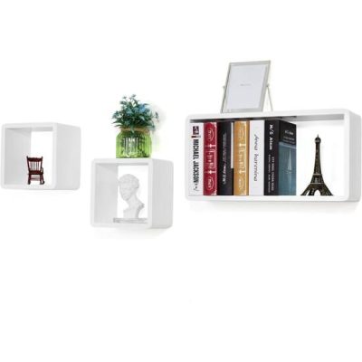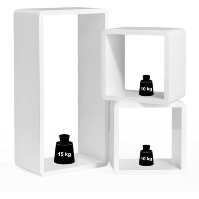 3 lebegő polc készlet, magasfényű fali polcok, fa kocka tárolórendszerek, 15 cm mélység, 50/22/22 cm, fehér