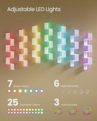 • Teremtsd meg a hangulatot:Ez a LED világítással ellátott sarokpolc 7 színt, 6 fényerőszintet, 3 villogási módot és 6 villogási sebességet kínál. A távirányító segítségével könnyedén alakíthatod ki a tökéletes atmoszférát.