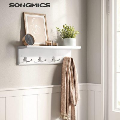 • [Robusztus és rugalmas] A robusztus fém kabáthorgok a nehéz téli kabátokat is kibírják (dupla horgonként akár 5 kg-ot is).A kiváló minőségű MDF-ből készült polc stabil és rugalmas (5 kg-ig) - nyugodtan tárolhatja rajta pohárkollekcióját