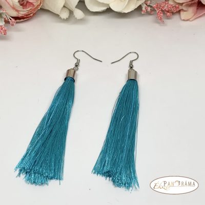 Fashion bojtos akasztós fülbevaló - ezüst türkiz
