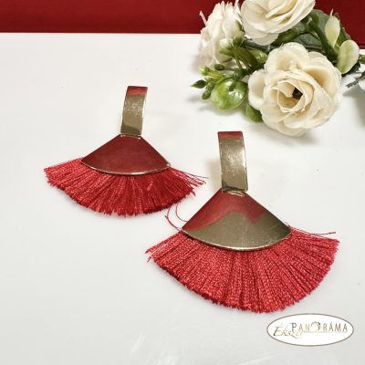 Fashion bojtos beszúrós fülbevaló - arany piros legyező