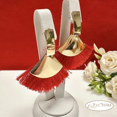 • Fashion bojtos beszúrós fülbevaló - arany piros legyező