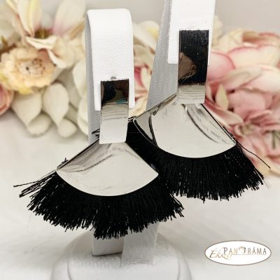 Fashion bojtos beszúrós fülbevaló - ezüst fekete legyező