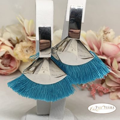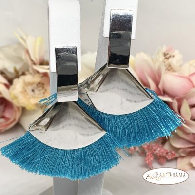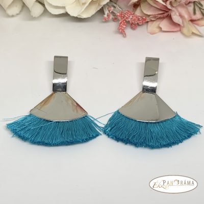 Fashion bojtos beszúrós fülbevaló - ezüst kék legyező