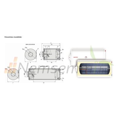 SunSystem vízszintes fali melegvíz tároló elektromos fűtőbetéttel, termosztáttal.
