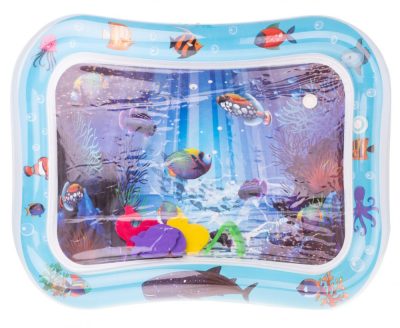 A szőnyeg belsejében színes vízi állatok vannak, amelyek a gyermek mozgásának hatására mozognak.