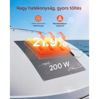 A 200 W-os félig flexibilis monokristályos napelem ideális választás, ha olyan megoldást keres, amely nemcsak hatékony, hanem rugalmasan telepíthető is. A speciális kialakítás lehetővé teszi, hogy a panel enyhén ívelt felületekre is felszerelhető legyen, így kiválóan alkalmazható hajókon, lakókocsikon, autókon vagy kabinokon.