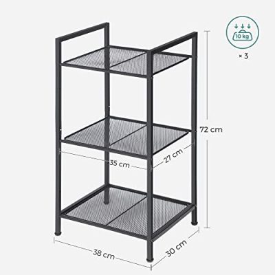 • MINŐSÉGI MÉRLEG: Stabil fémváz, nagy teherbírású hálós polcok - Ez a fürdőszobai polc jó stabilitással és teherbírással rendelkezik (minden polc akár 10 kg-ig). Törölközők és mosószerek biztonságosan tárolhatók ezen a polcon