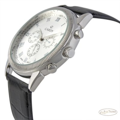 • Férfi karóra fekete bőr szíjjal, Cardy