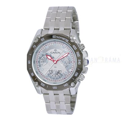 Ezüst színű fém szíjas, elegáns sportos férfi karóra. Számlapja ezüst, ezüst-piros mutatóval!