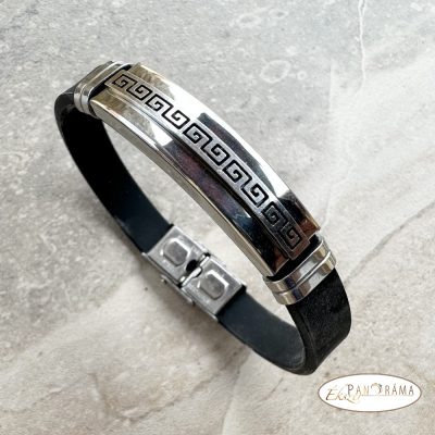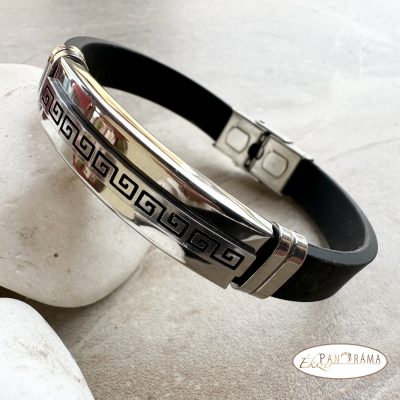 Nemesacél férfi karkötő, kaucsuk szíjjal, biztonságos kapcsolóval.
