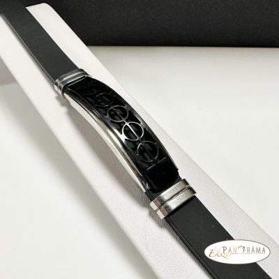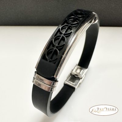Nemesacél férfi karkötő kaucsuk kombinációval, ezüst színű fémrésszel, fekete díszítéssel! Igazán fiatalos, férfias, sportos viselet.