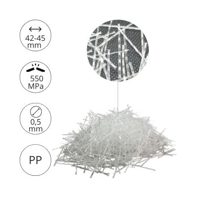 • A fiber makrószál erősíti és rugalmasabbá teszi a betont, miközben megakadályozza a repedések terjedését. Növeli a beton szakitószilárdságát.