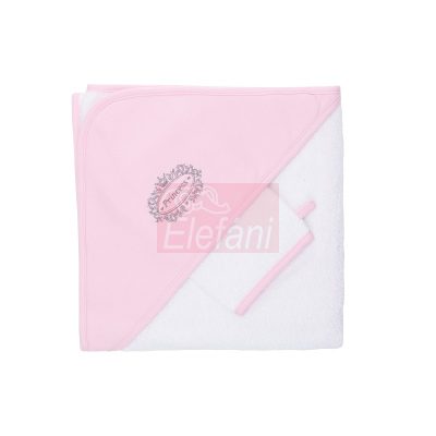 Kapucnis, hímzett fürdőlepedő + fürdető kesztyű