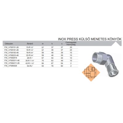 • FixTrend Inox press könyök külső menettel, 28 mm - 1"