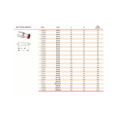 FixTrend Steel Press szénacél szűkítő, 1 tokos, 108 - 54mm