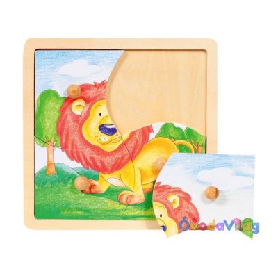 Fogantyús Puzzle-Oroszlán készségfejlesztő játék, szem-kéz koordinációt és rész-egész viszonyok fejlesztésére kiváló, már a legkisebbeknek is