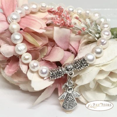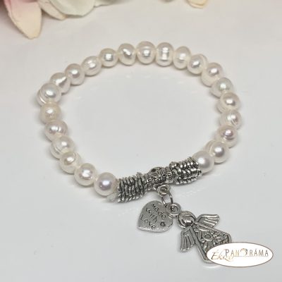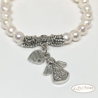 • Folyami gyöngy karkötő angyalkás és szív lógóval