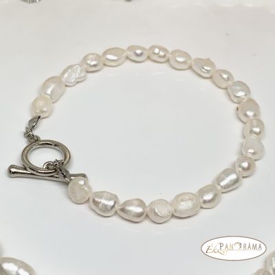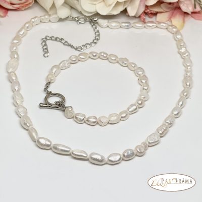 Elegáns, fehér színű folyami gyöngyökből álló, nyakék, és karkötő szettben