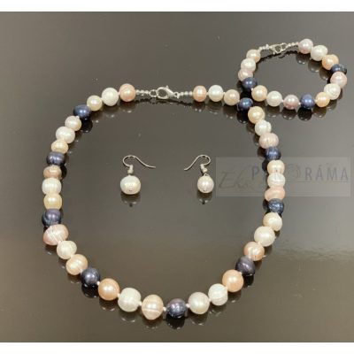 • Folyami Gyöngy Nyaklánc és Karkötő Szett - Carmen tricolor