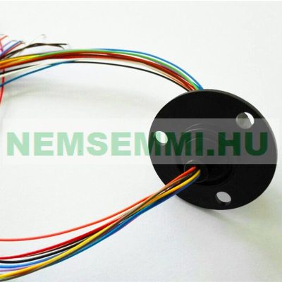 Forgó érintkező, csúszógyűrű 2A 12 vezetékes, karimával, kábelcsavarodás ellen, pl. kamera, robot, szélkerék, szélturbinába, aranyozott érintkezőkkel.
