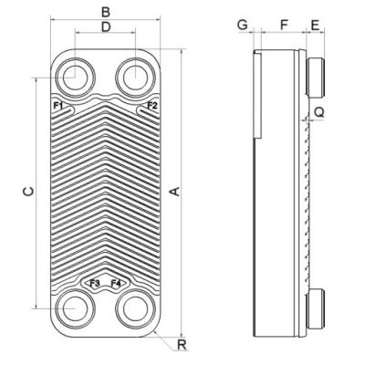• Lemezes hőcserélő "B" mérete: 72 mm