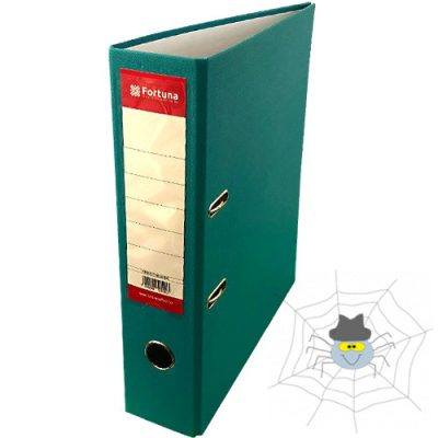 Közkedvelt, kívül műanyag, belül papírborítású Fortuna iratrendező. Az 5 cm-es gerincen hegesztett, hosszú (195 mm-es) címketartó található, cserélhető, egyszínnyomott Fortuna címkével, kihúzógyűrűvel ellátva. Az iratrendező záródását az elején elhelyezett 2 db acélgyűrű biztosítja. Az iratok lefűzése karos, kétkapcsos szerkezettel, fém leszorítóval történik.