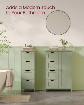 VASAGLE Fürdőszobai Állószekrény, 4 Fiókos Tárolóegység, Álló Szekrény 1 Ajtóval, Állítható Polc, 30 x 55 x 82 cm, Babérzöld