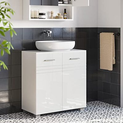 • A minőség számít: ez a 60 x 30 x 63 cm-es fürdőszobai szekrény robusztus MDF-ből és forgácslapból készült, és hosszú élettartamot ígér. Ezenkívül a hátlapon lévő lemez szorosan kapcsolódik a testhez, és így további stabilitást biztosít