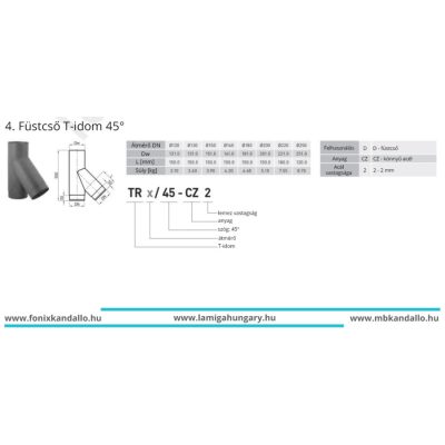 A DARCO márkájú T-idom csatlakozó ajánlott kandallók, kályhák és kondenzáció nélkül működő szilárd tüzelésű kazánok füstgázainak elvezetésére.