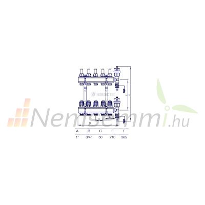 • Fűtési osztó-gyűjtő 5 körös fűtési elosztó