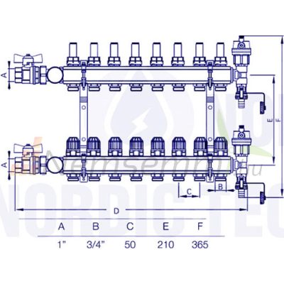 • Fűtési osztó-gyűjtő 8 körös áramlásmérős fűtési elosztó padlófűtés számára