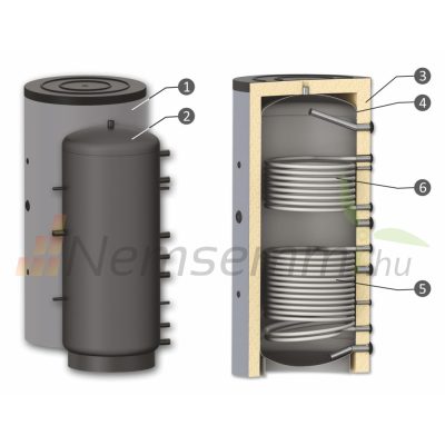 • Fűtési puffer tartály - 2 hőcserélővel 1500 literes tartály melegvíz tárolás céljára. Sunsystem PR2 1500