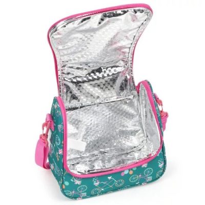 Gabol Fiori uzsonnástáska. Főrekeszének kialakítása hűtőtáska jellegű, így gyermeke uzsonnáját hűvösben tarthatja a nap folyamán. Mintájának köszönhetően hamar a kislányok kedvencévé válik. Az uzsonnástáska a Gabol gurulós iskolatáskák húzószerkezetére ráhúzható, valamint kézben vagy vállon is kényelmesen hordható.
