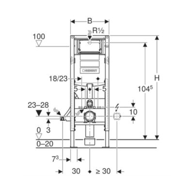 GEBERIT Duofix beépíthető WC tartály kis keretszélességgel mozgáskorlátozottak részére