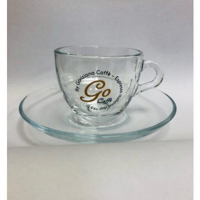 GO espresso üveg csésze arany-fekete logóval és alj