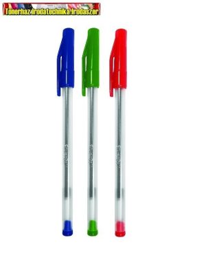 Eldobható kupakos golyóstoll kék, fekete, piros, zöld írásszínnel. 0,5 mm-es írásvastagsággal. A test színe megegyezik az írás színével. 50 db/doboz kiszerelés, de darabosával is rendelhető.