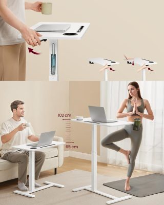 • Könnyű magasságállítás: A beépített minőségi gázrugónak és a praktikus karnak köszönhetően az asztal magassága egy kézzel könnyedén állítható 65 és 102 cm között