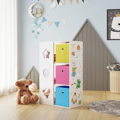 Üdvözöljük a vendéget: Ez a játékállvány kiváló minőségű anyagokból készült, 3 tárolódobozzal és gyermekbarát magasságban elhelyezett polcokkal rendelkezik. Tehát minden gyerekszobában szívesen látott vendég.