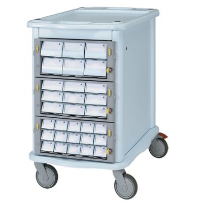 • Gyógyszerosztó kocsi 3 nagy, 30 kis fiókkal