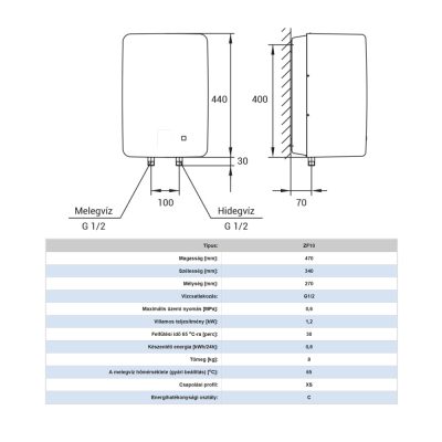 • HAJDU ZF10 10 literes felső elhelyezésű villanybojler