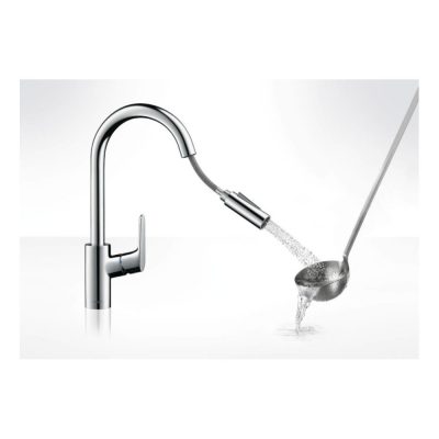• HANSGROHE Focus mosogató csaptelep, kihúzható zuhanyfejjel, matt fekete