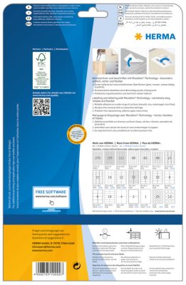 A Herma nyomtatható öntapadós címkéi kompatibilisek az általánosan forgalomban lévő irodai nyomtatókkal. Négy papírmentes lapszéllel rendelkezik, mely ragasztómentes terület biztosítja, hogy nyomtatás közben ne kerülhessen ragasztómaradvány és egyéb szennyező anyag a nyomtató hengereire, görgőire, dobegységére. Így elkerülhetővé válik a címkék feltapadása a nyomtató belső alkatrészeire.