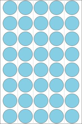 • Herma No. 2253 kék színű, 19 mm átmérőjű, öntapadó jelölő címke (jelölő pötty, jelölő pont) permanens ragasztóval - kiszerelés: 1280 címke / csomag, 32 ív / csomag (Herma 2253)