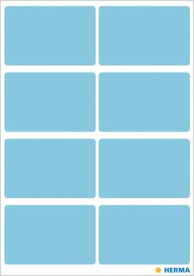 Herma Vario 25 x 40 mm méretű, kis kiszerelésű, kék színű, matt felületű, kézzel írható öntapadó jelölő címke, permanens ragasztóval, kerekített sarkokkal. Egy csomagban 5 darab 84 x 120 mm-es lapon összesen 40 darab (laponként 8 darab), külön-külön leválasztható, kék színű jelölő címke található.
