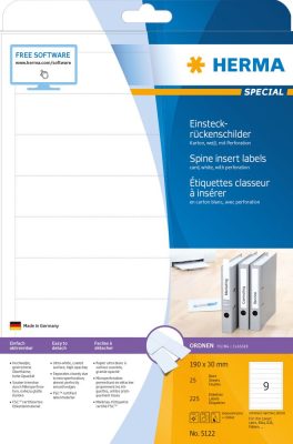 • Herma No. 5122 univerzális 190 x 30 mm méretű, iratrendező betétlap mikroperforált élekkel A4-es íven - 225 betétlap / csomag - 25 ív / csomag (Herma 5122)