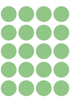 • Herma Vario No. 1875 zöld színű, 19 mm átmérőjű, öntapadó jelölő címke (jelölő pötty, jelölő pont) permanens ragasztóval - kiszerelés: 100 címke / csomag, 5 ív / csomag (Herma 1875)